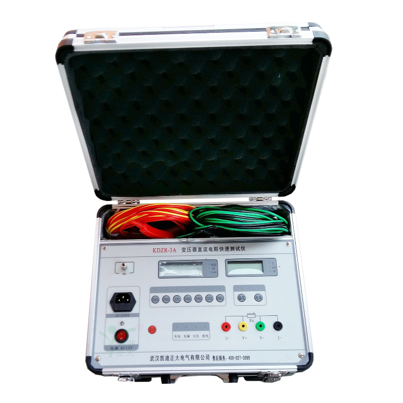 KDZR-3A直流電阻測試儀(微歐計)是取代直流單、雙臂電橋的高精度換代產(chǎn)品。儀器采用了先進的開關電源技術,由四位半LCD液晶顯示測量結果。克服了其它同類產(chǎn)品由LED顯示值在陽光下不便讀數(shù)的缺點,同時具備了自動消弧功能。本儀器具有測速快、精度高、顯示直觀、抗干擾能力強、體積小、耗電省、測試數(shù)據(jù)穩(wěn)定可靠、不受人為因素影響等優(yōu)點。是測量電力變壓器及大型電機等各種感性負載電阻及低壓開關接觸電阻、電線電纜或焊縫接口電阻的理想儀器,其測量速度比電橋快一百多倍。儀器內(nèi)裝可充電電池組(12V),交、直流兩用,便于現(xiàn)場及野外測試。