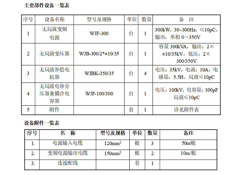 (1)設備型號及名稱: WJF-300kW無局放感應耐壓試驗裝置