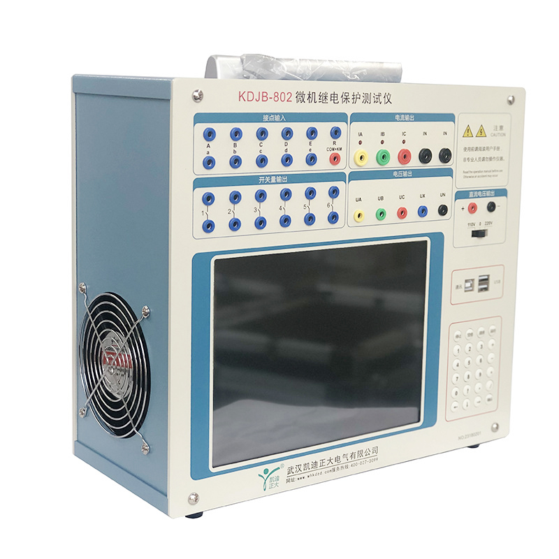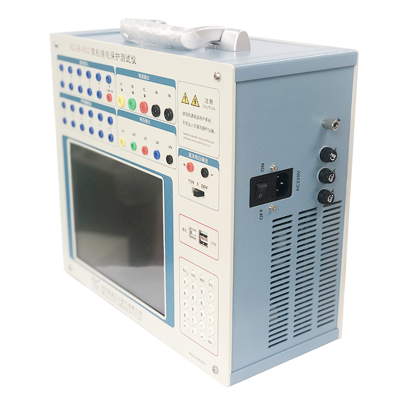 KDJB-802繼電保護測試儀采用可單機獨立運行,亦可聯接筆記本電腦運行的結構,主機內置高速數字信號處理器微機、真16位DAC模塊、模塊式高保真大功率功放,自帶大屏幕液晶顯示器以及靈活方便的觸摸屏控制器。具有操作功能強。體積小,精度高。既具有大型測試儀的性能和功能,又具有小型測試儀小巧靈活、操作簡便、可靠性高等優點,性能價格比高。