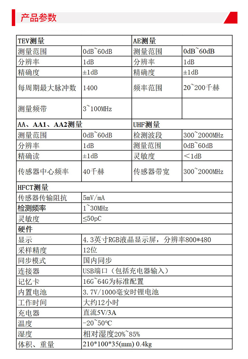 4.內(nèi)置超聲波傳感器和瞬態(tài)接地電壓(以下簡稱TEV)傳感器,可連接變壓器、GIS、架空線路、電纜等專用傳感器。