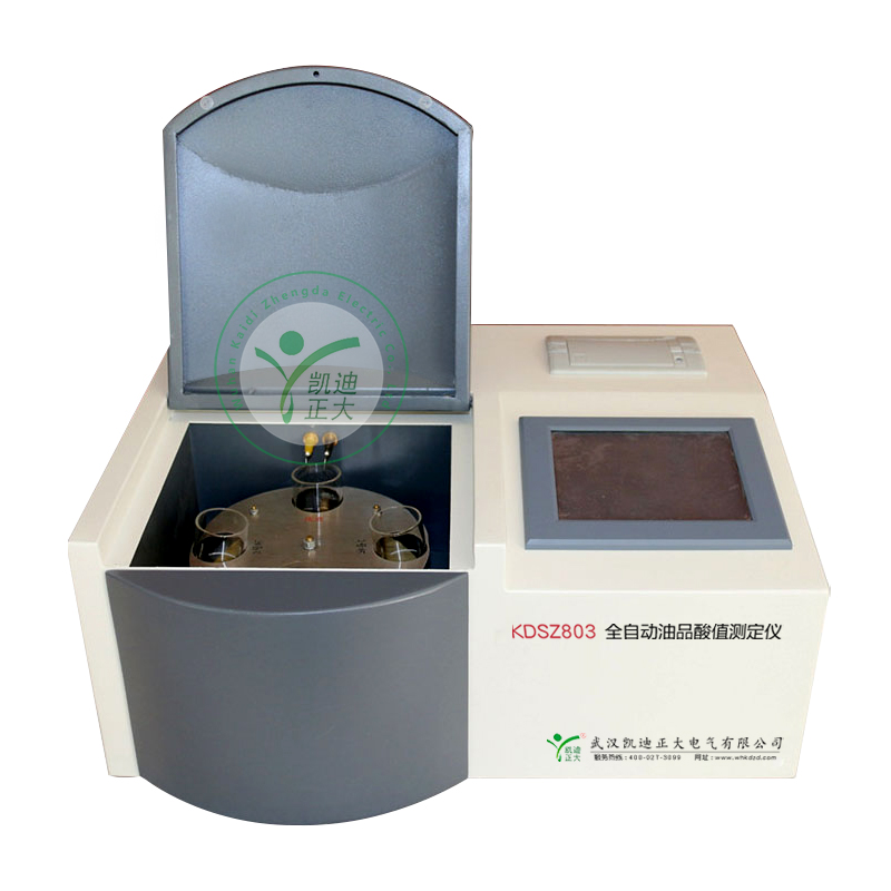 KDSZ-803D全自動油品酸值測定儀采用中和法原理,于常溫狀態下,微機控制自動完成加液、攪拌、滴定及終點判斷。采用觸摸式液晶屏選擇所有工作參數,人機對話界面簡潔友好,操作方便,油樣平均分析周期為2分鐘左右。可分別顯示多至35組的測定結果,并可打印輸出多項與測定相關的參數。