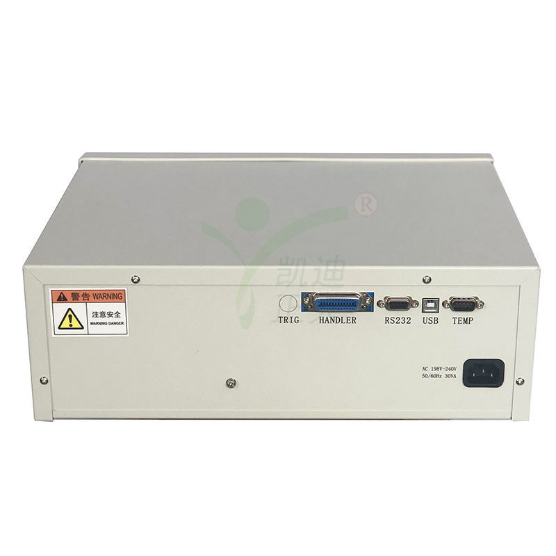 10、隨機附件:使用說明書、測試報告、質保證書、保修卡、裝箱單、儀器、電源線、保險絲、三端開爾文測試夾、RS232通訊電纜、USB通訊、電纜腳踏開關(選配))