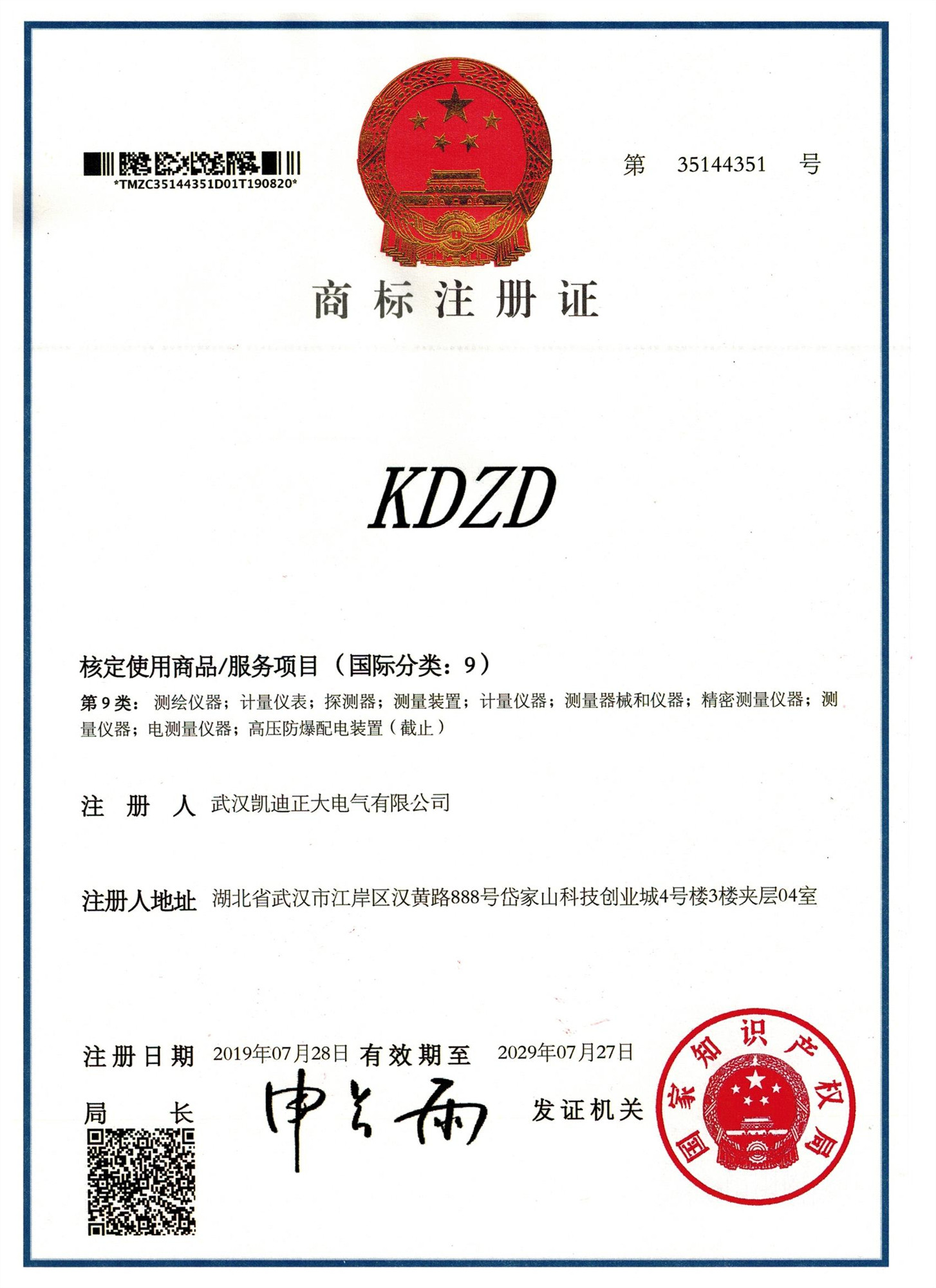 ![]() “凱迪正大”計量儀表商標注冊證 |