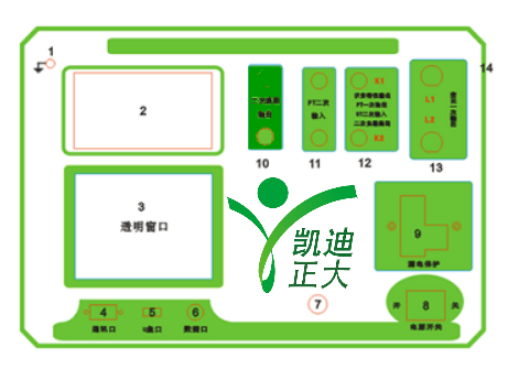 13.CT一次輸入口 14.機(jī)箱右側(cè)電源輸入,~220V(±10%)
