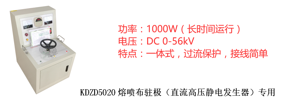 根據上述要求,就靜電駐極體的性質而言, 電暈放電法是目前較好的靜電駐極(KDZD5020直流高壓靜電發生器)方法;熱極化法在環境相對穩定時也是一種較好的靜電駐極方法;摩擦起電法要在試驗中進一步完善;靜電紡絲法需要科技的進一步發展;低能電子束轟擊法需要改進和簡化靜電駐極的工藝。