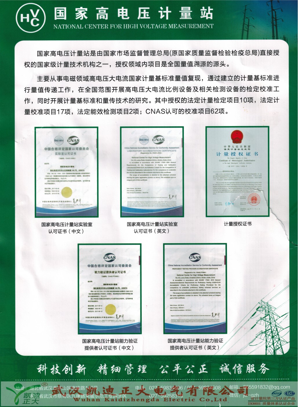 國家高電壓計量站是由國家市場監督管理總局(原國家質量監督檢驗檢疫總局)直接授權的計量技術機構之一,授權領域項目是全國量值溯源的源頭。