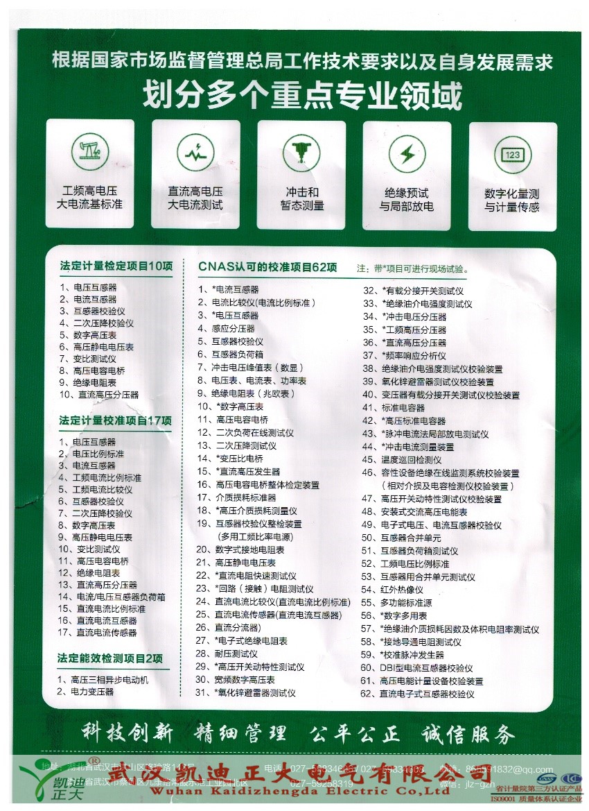 我司主要生產研發KYN28A高壓開關柜出廠檢測設備,應客戶和生產技術部要求送到國家高電壓計量站校準后投入KYN28A高壓開關柜的研發和出廠檢測。來到電科院進行一批設備的調試以及培訓工作,這批設備是CNAS認可的校準項目包括: