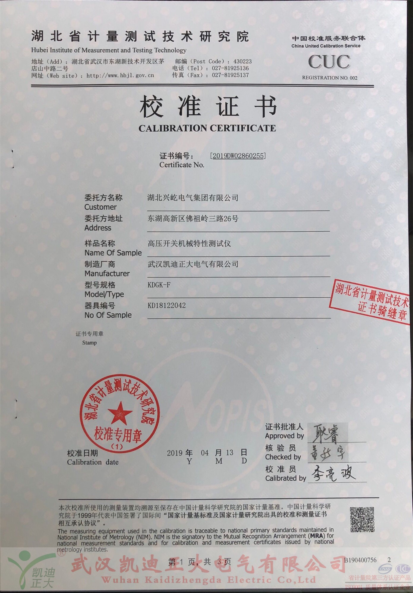 購(gòu)買(mǎi)后便送往中國(guó)校準(zhǔn)服務(wù)聯(lián)合體-湖北省計(jì)量測(cè)試技術(shù)研究院檢定,由省計(jì)量院出具的《校準(zhǔn)證書(shū)》,證書(shū)編號(hào):2019DW2860255,校準(zhǔn)員:李亮波,檢驗(yàn)員:董新宇,證書(shū)批準(zhǔn)人:耿睿。