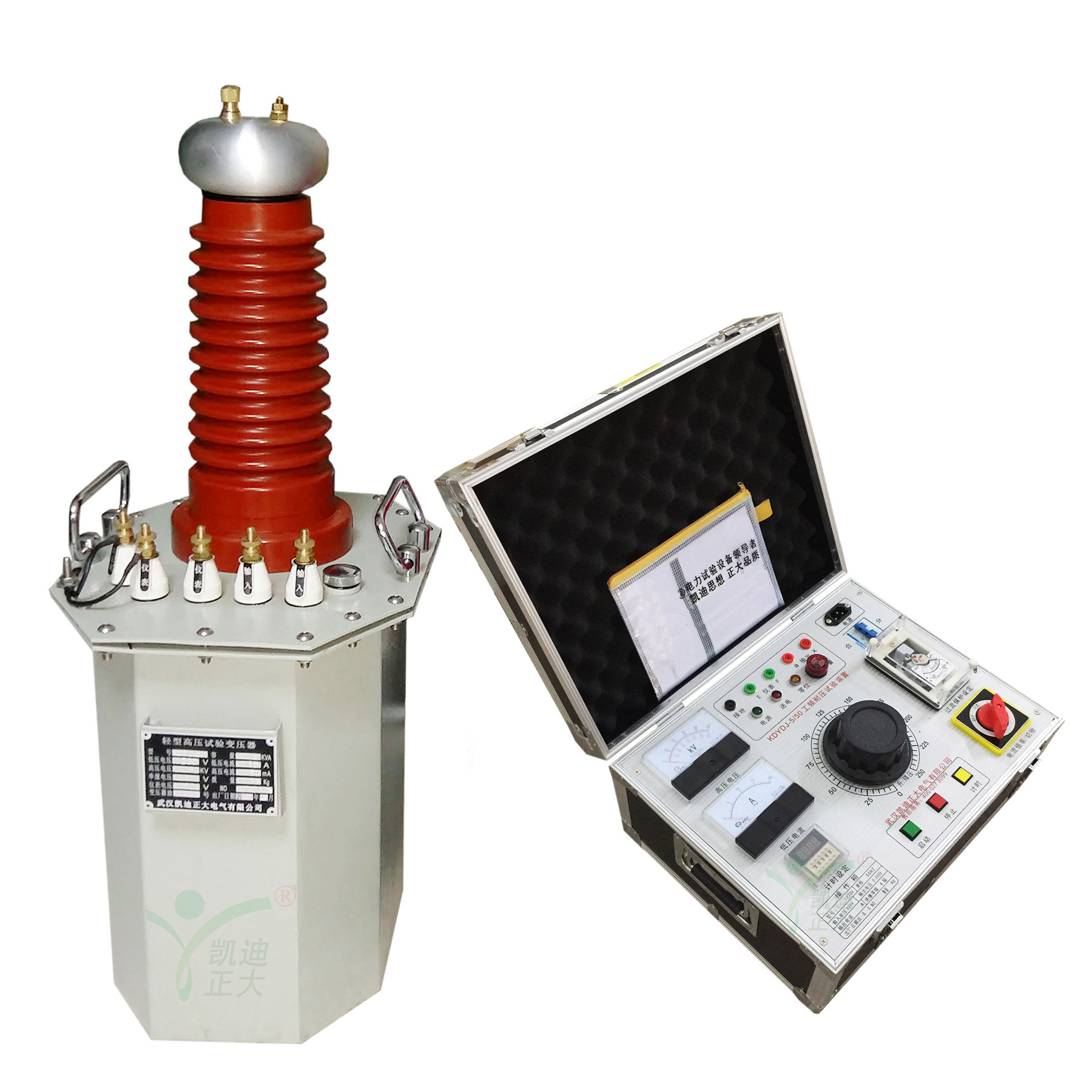 武漢凱迪正大生產的KDYDJ交直流工頻耐壓試驗裝置是根據國家最新電力行業標準而設計的、性能高新的耐壓試驗設備,用于對各種電器產品、電氣元件、絕緣材料等進行規定電壓下的絕緣強度試驗,以考核產品的絕緣水平,發現被試品的絕緣缺陷,衡量過電壓的能力,它能檢查出那些危險性較大的集中缺陷,對判斷電力設備能否繼續參加運行具有決定性作用,是保證設備絕緣水平、避免發生絕緣事故的重要選擇。