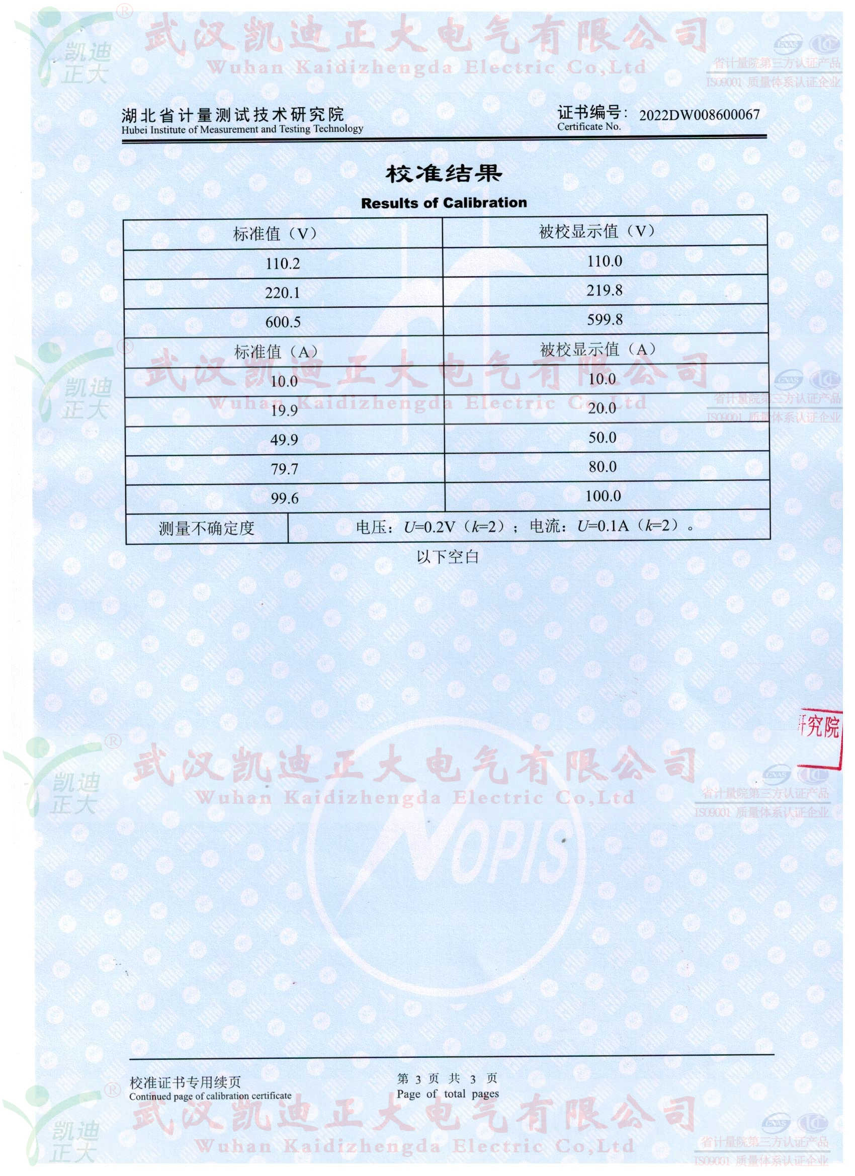 生產(chǎn)KDZD886完成后,送往省計(jì)量院。在校準(zhǔn)證書顯示:采用國(guó)家高電壓計(jì)量站(計(jì))字第2021015336號(hào)溯源機(jī)構(gòu)的高精度電流傳感器及數(shù)字多用表檢定電壓示值誤差U=0.2V;電流值U=0.1A的結(jié)果值,符合國(guó)家相關(guān)標(biāo)準(zhǔn),滿足測(cè)量不確定度。