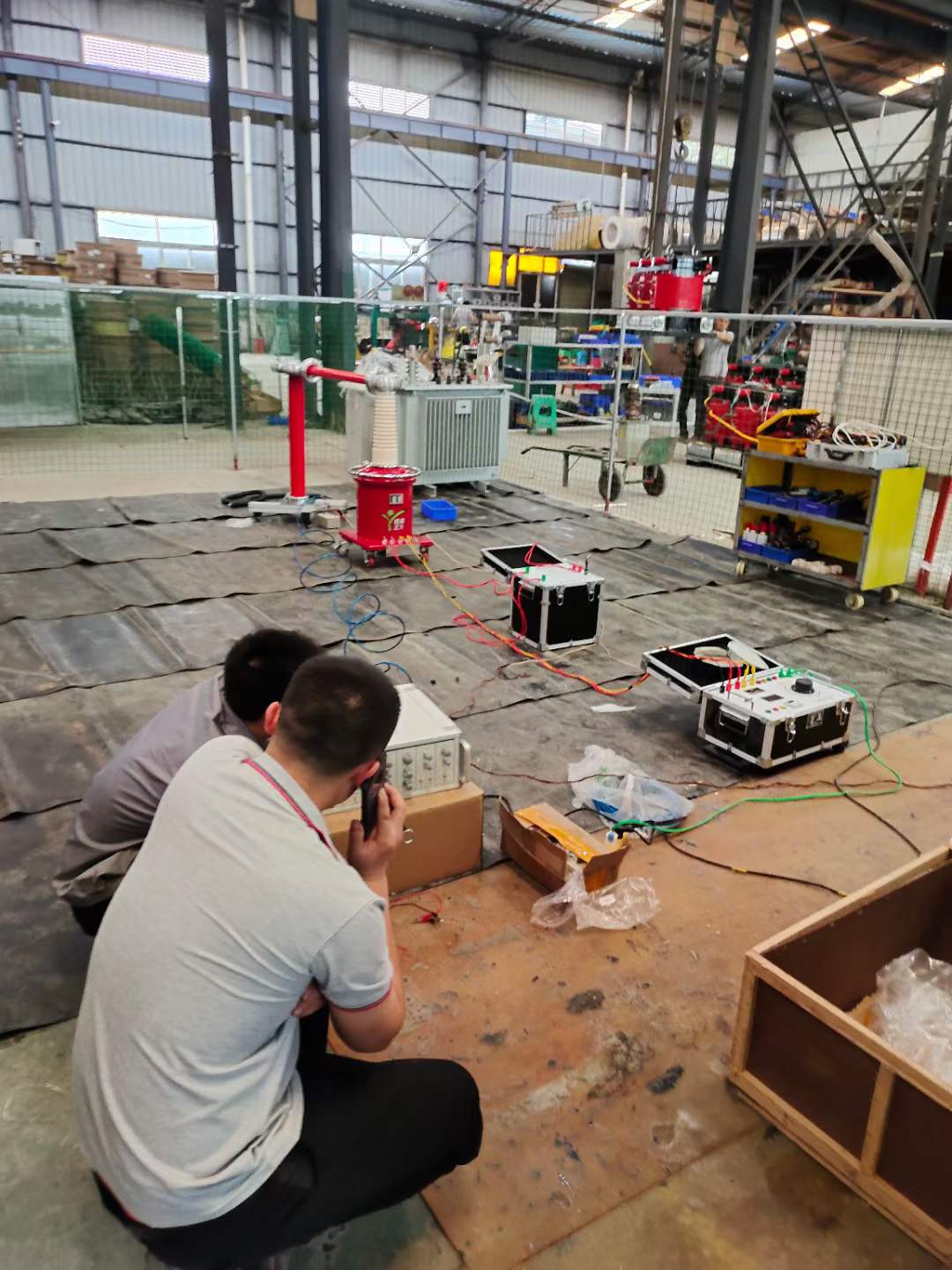 抵達(dá)現(xiàn)場后王工先與客戶細(xì)心講解了儀器的特點(diǎn)和使用方法,之后進(jìn)行測試前的設(shè)備線路連接和被試絕緣油樣品取樣工作。 王工在確認(rèn)各項(xiàng)準(zhǔn)備工作無誤后開始與客戶進(jìn)行絕緣油樣品測試,測試完成后進(jìn)行油介質(zhì)損耗測試。 在王工耐心的指導(dǎo)下,客戶完成了本次被試絕緣油樣品的油介電強(qiáng)度和油介質(zhì)損耗試驗(yàn)。然后進(jìn)行變壓器負(fù)載試驗(yàn)及無局放耐壓試驗(yàn)指導(dǎo),一直忙到晚上。最終,成功完成客戶的培訓(xùn)指導(dǎo)工作,客戶對此次技術(shù)指導(dǎo)培訓(xùn)工作非常滿意。