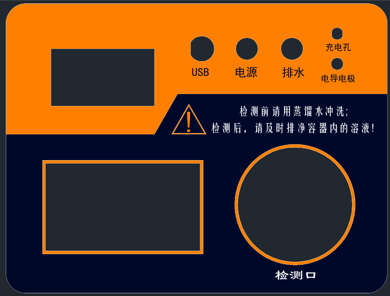 將排水管插入排水孔,按下“排水”按鍵即可將被測溶液從排水管排出,待被測溶液全部排出后,再加入適量蒸餾水,進行清洗,可反復沖洗幾遍,直到容器內沖洗干凈并排盡所有蒸餾水后,恢復“排水”按鍵,拔出排水管。