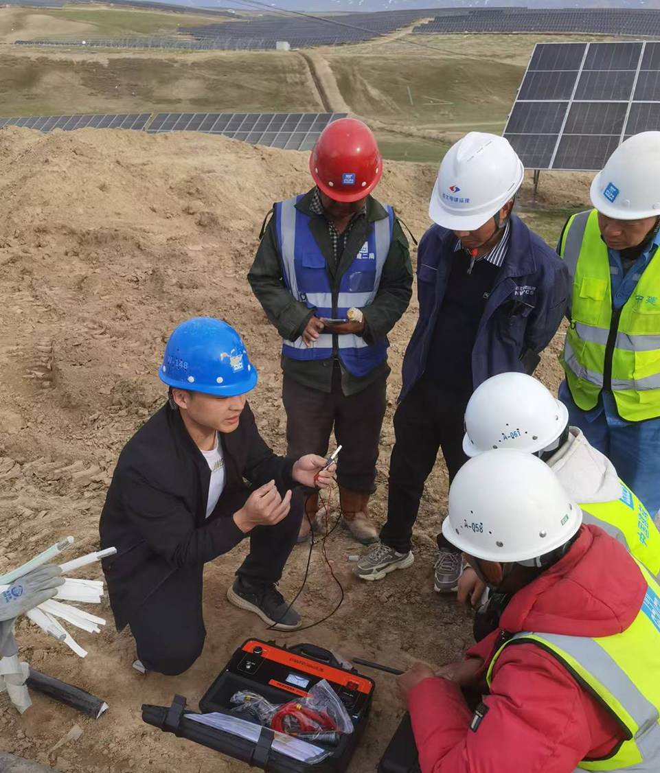 在交付現(xiàn)場,凱迪正大的技術(shù)人員為西北電建新疆光伏電站的工作人員詳細(xì)演示了KD-216A電纜故障綜合測試儀的操作流程,從儀器開機(jī)、參數(shù)設(shè)置,到波形采集、數(shù)據(jù)分析,每一步都進(jìn)行了詳盡的講解。KD-216A的操作便捷、可靠性有高精度,讓他們對電站電纜系統(tǒng)的維護(hù)充滿了信心。