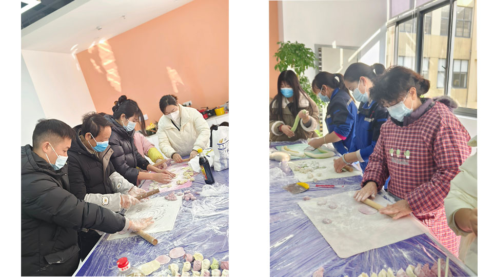 在團(tuán)隊的精心組織下,大家分工明確,各司其職,卻又默契十足。有的員工手法嫻熟地揉面、搟皮,那一張張薄如蟬翼、圓如玉盤的面皮,在他們的指尖跳躍,仿佛是冬日里靈動的藝術(shù)品;有的則專注地調(diào)配餡料,將新鮮的蔬菜與精選的肉末巧妙融合,每一口都是對味蕾的誘惑;還有的員工則是包餃子的高手,他們靈巧地將餡料置于面皮之上,輕輕一捏一合,一個個形態(tài)各異、憨態(tài)可掬的餃子便躍然桌上,有的宛如小船,有的似元寶,還有的帶著幾分俏皮的褶皺,仿佛在訴說著各自的故事。