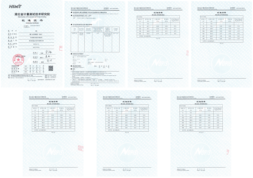 2025年7月,廈門火炬高壓區(qū)(翔安)正式引入武漢凱迪正大電氣有限公司研發(fā)生產(chǎn)的KDGK-301開關觸頭夾緊力測試儀,此次采購通過湖北省計量測試技術研究院的校準并取得校準證書。
