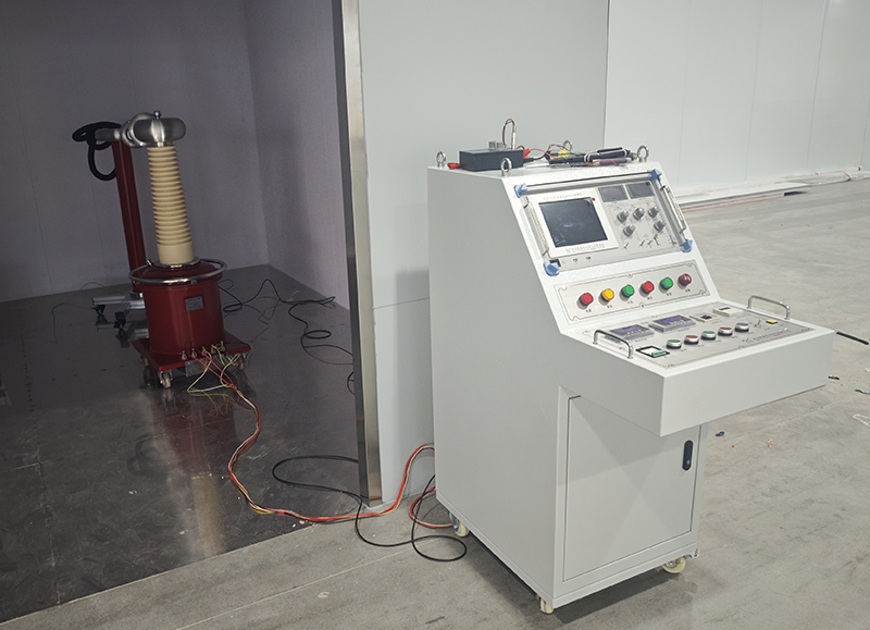 保護電阻采用串聯(lián)方式連接在變壓器高壓輸出與試品之間,所有連接點都使用了特制的高壓連接器,確保接觸可靠。耦合電容器通過絕緣支架固定,并聯(lián)在試品高壓端與地之間,均壓環(huán)安裝牢固,屏蔽電纜布線整齊規(guī)范。